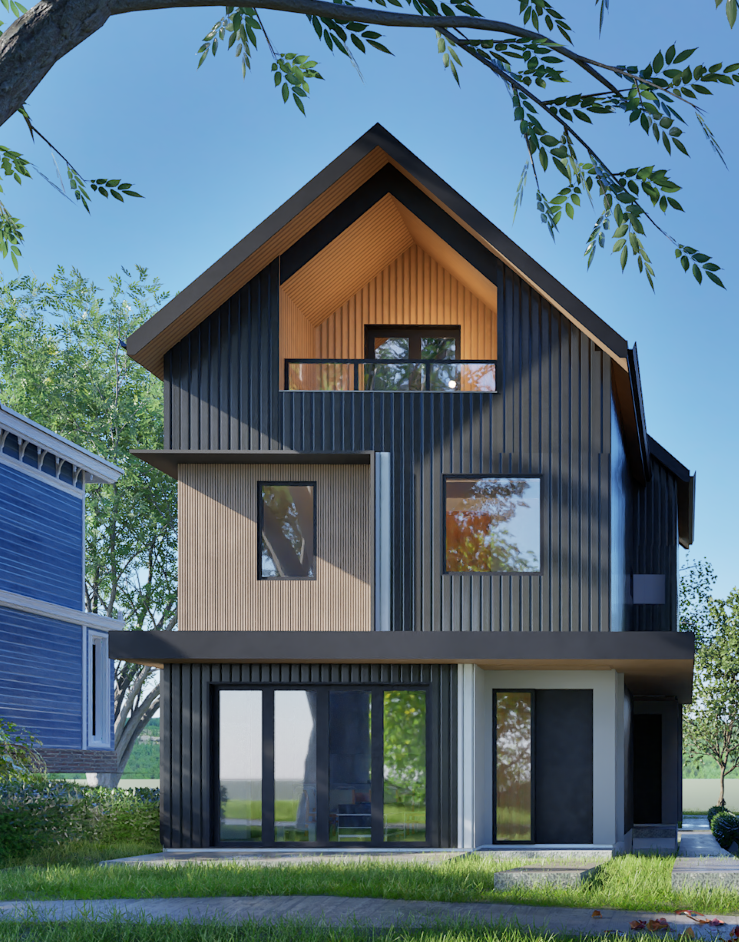 This contemporary duplex design makes a bold architectural statement with its clean lines, vertical cladding, and striking contrast of dark and light materials. Located in the West Side of Vancouver, the project balances modern aesthetics with practical urban living.