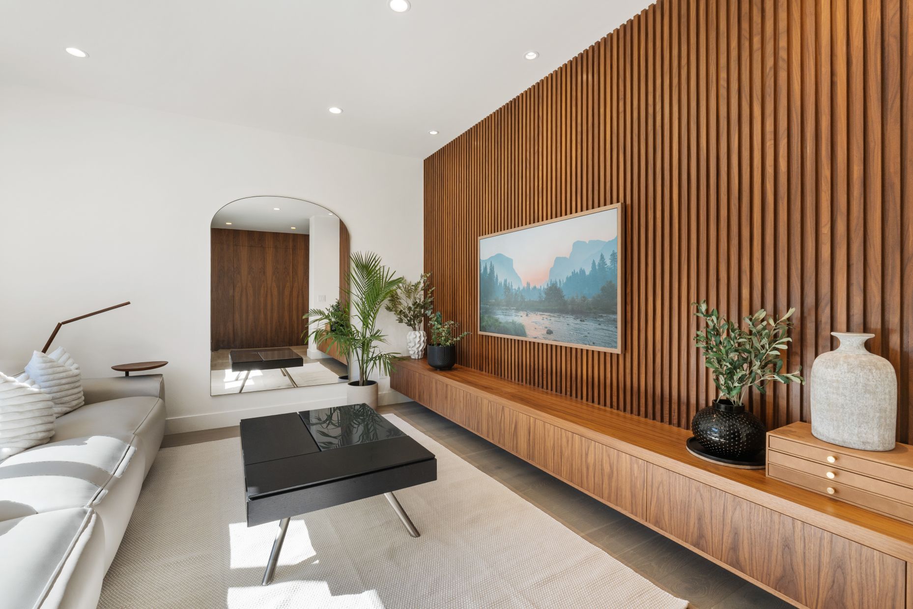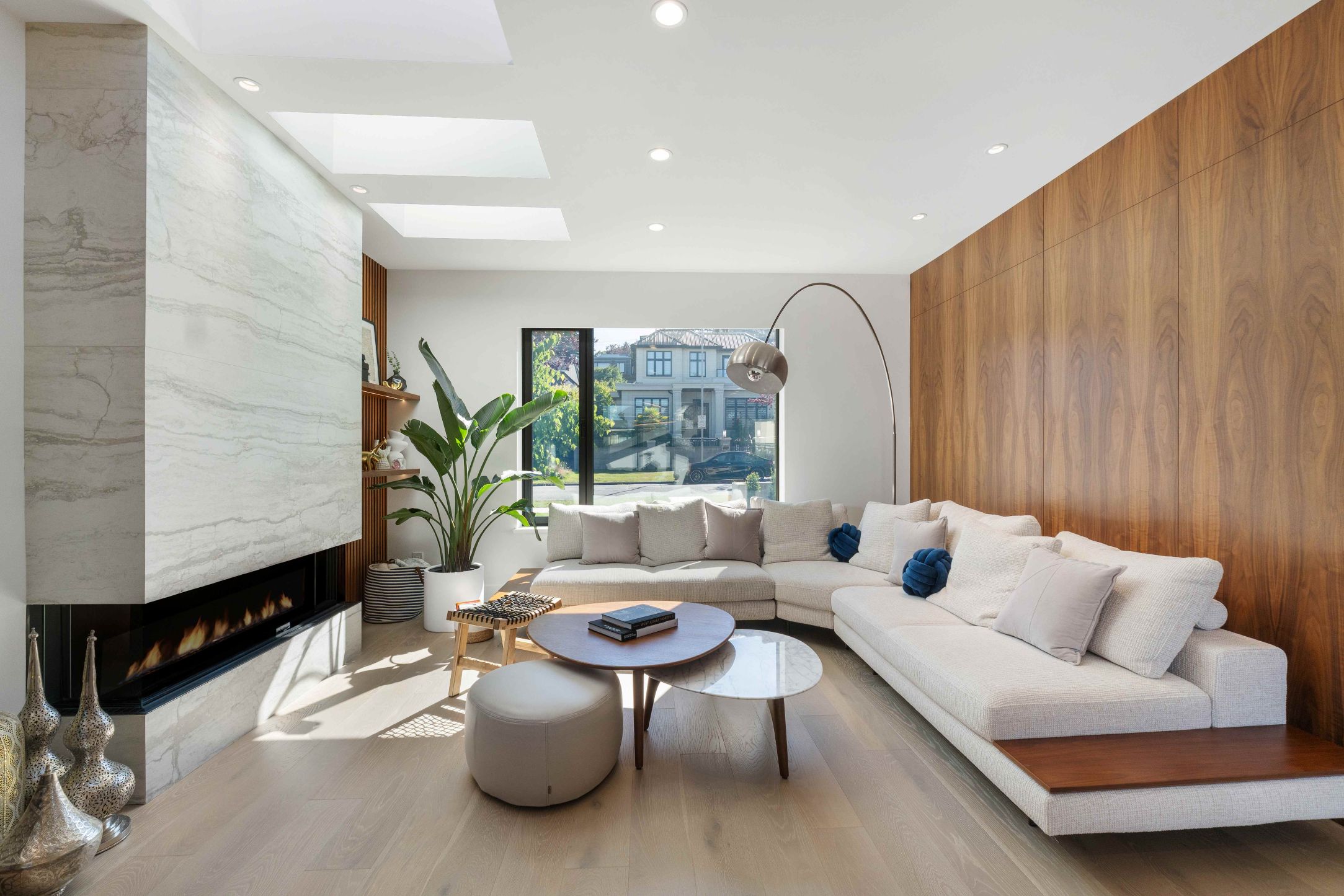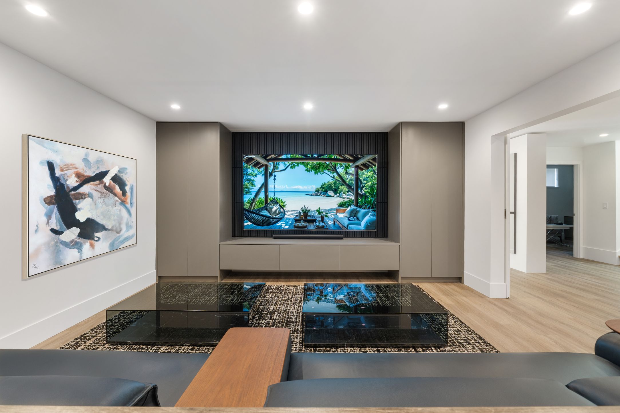 A home theater has been designed and built in the basement for family game nights, along with a guest suite and a home office.