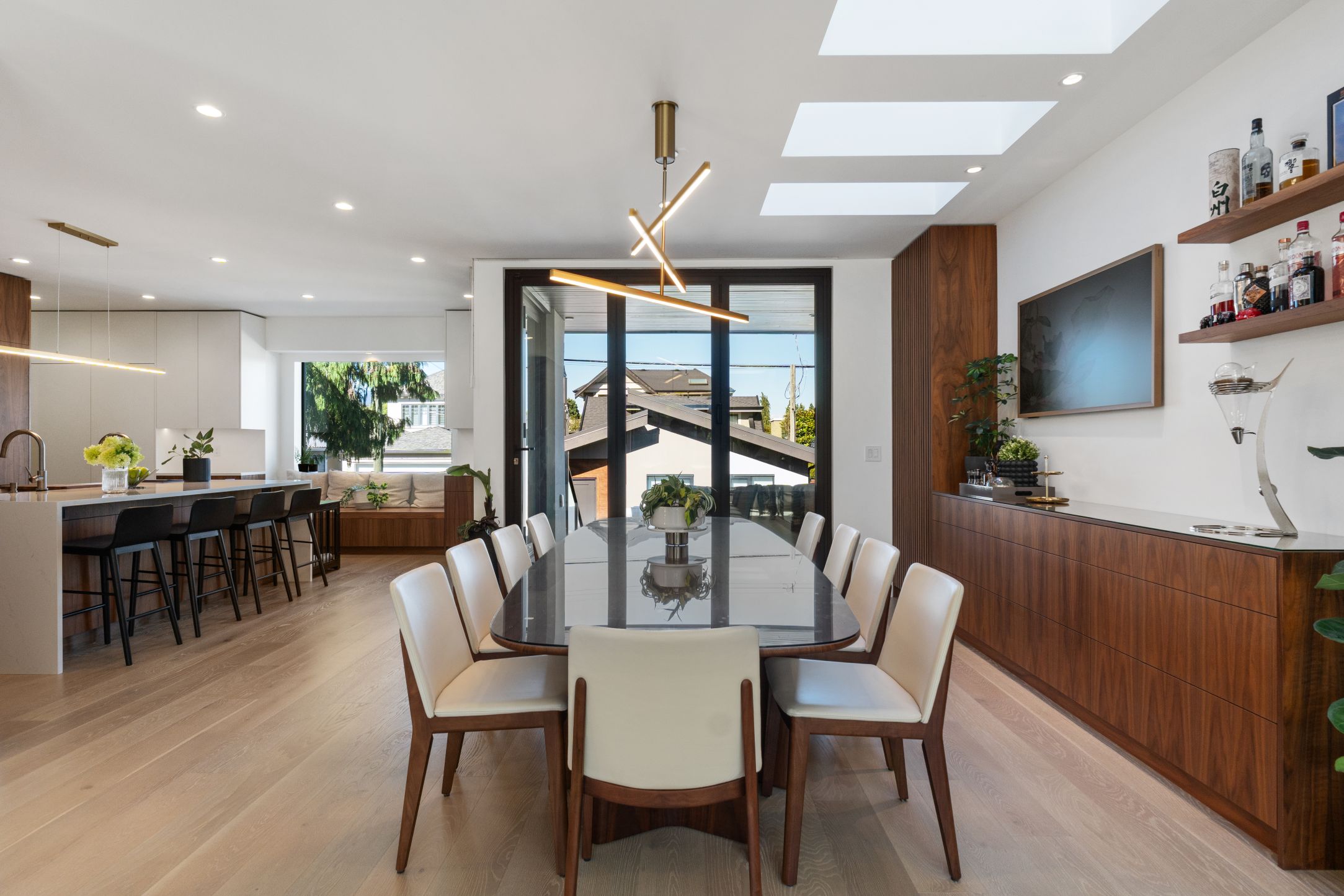 On this project, the interior design, open layout, and landscape design create a unique space crafted specifically to fulfill our client’s vision. With warm lighting throughout the home, the millwork unifies the entire house into a magnificent piece of home design.