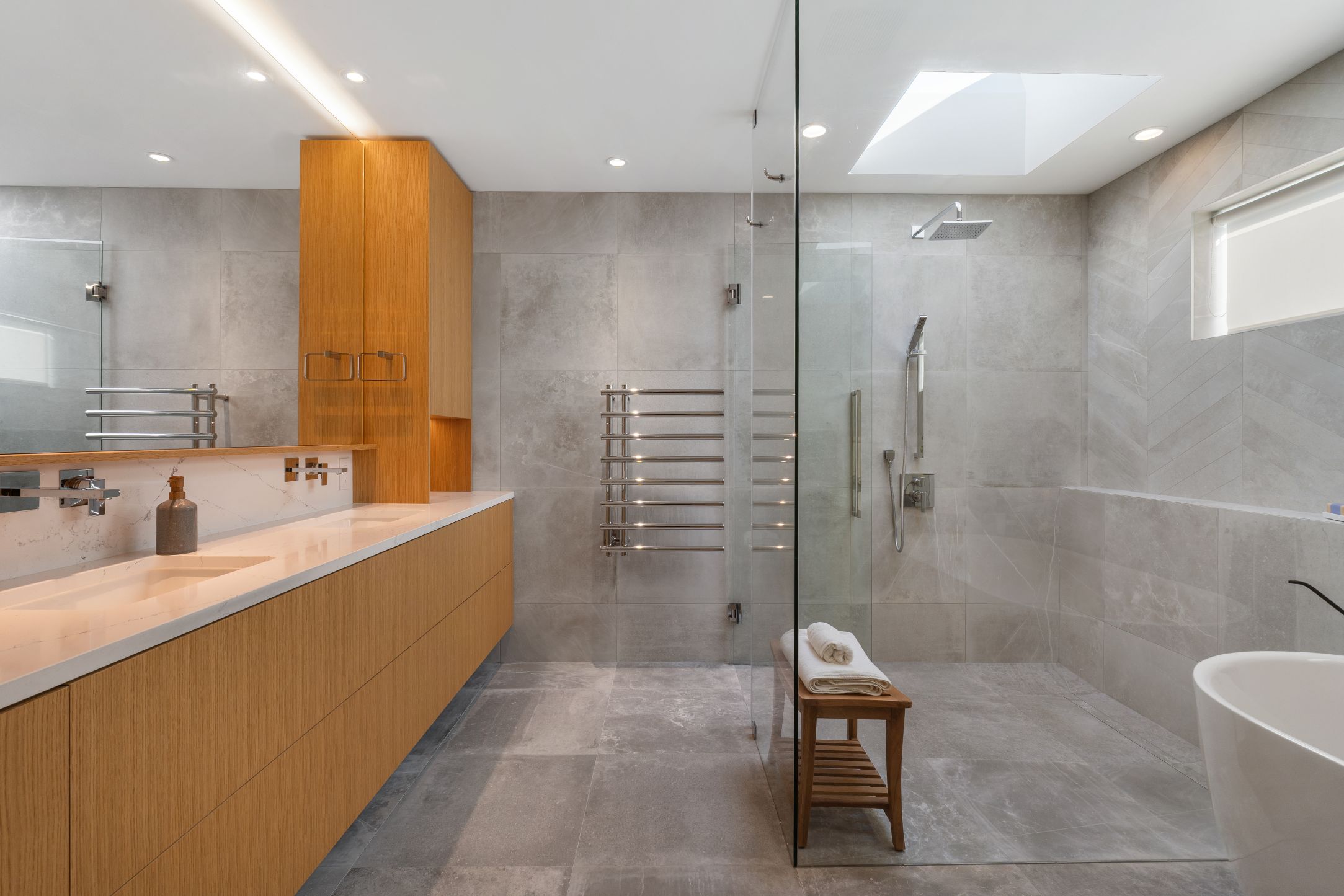 An important request from our client was an ensuite where she could unwind after a long day. With heated floors and a serene vibe, we created a space that is hard to get away from.